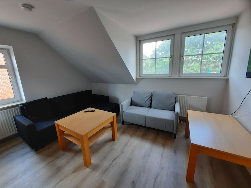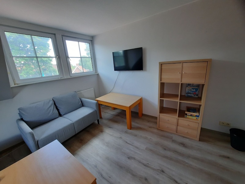 - Er is een gezellige zitkamer met gemakkelijke stoelen en TV.